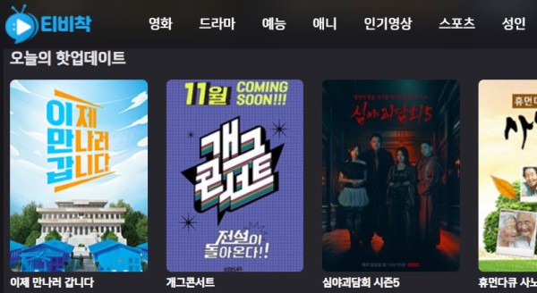 티비착 (Tvchak)은 무료 영화, 최신드라마, 최신 예능, 스포츠 등 여러 종류의 콘텐츠를 비용 없이 무료로 즐길수 있는 스트리밍 플랫폼입니다.